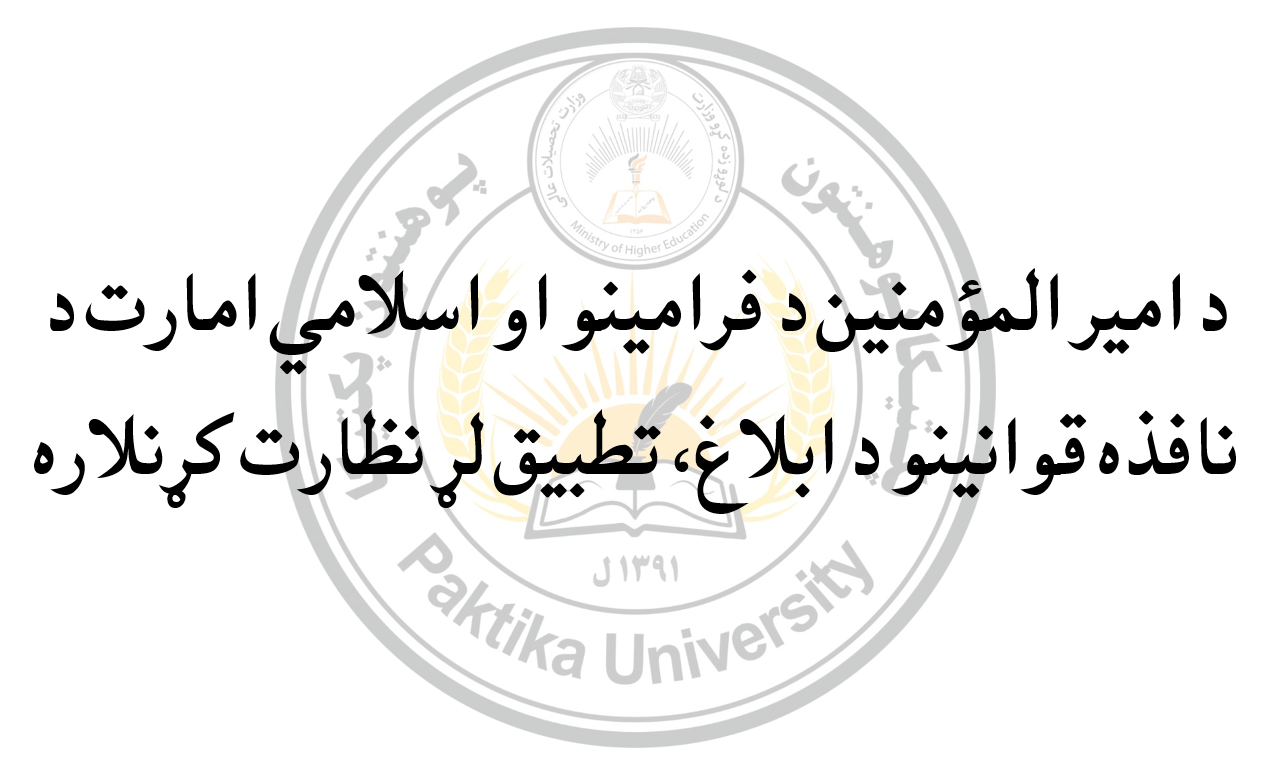 د امیر المؤمنین د فرامینو او اسلامي امارت د نافذه قوانینو د ابلاغ، تطبیق لړ نظارت کړنلاره